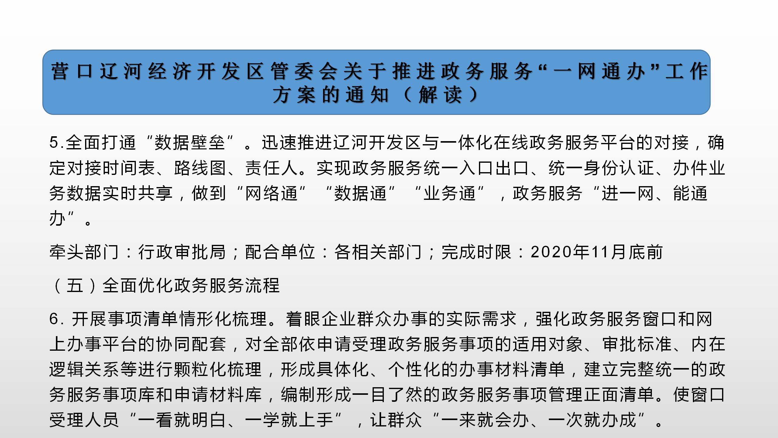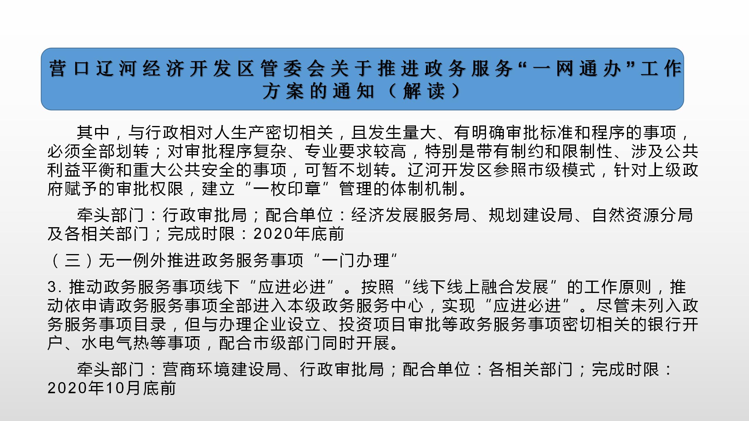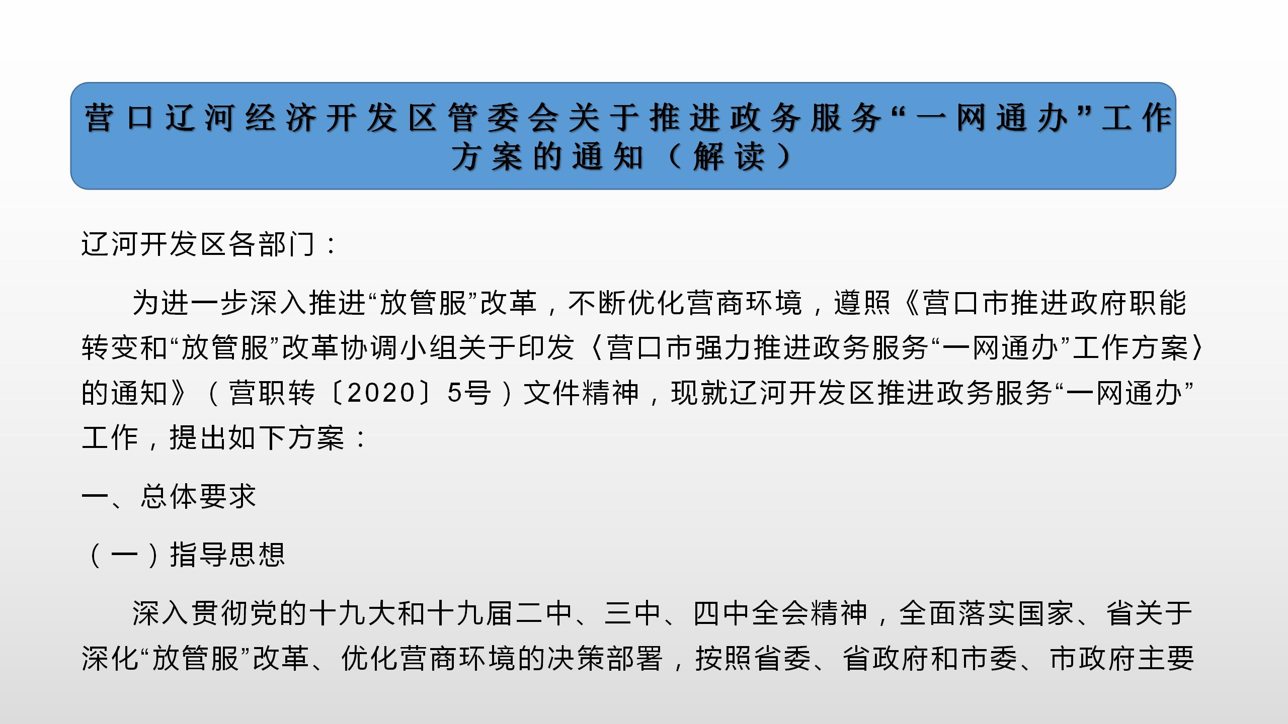相关文件:〔2020〕40号:营口辽河经济开发区管委会关于推进政务服务“一网通办”工作方案的通知